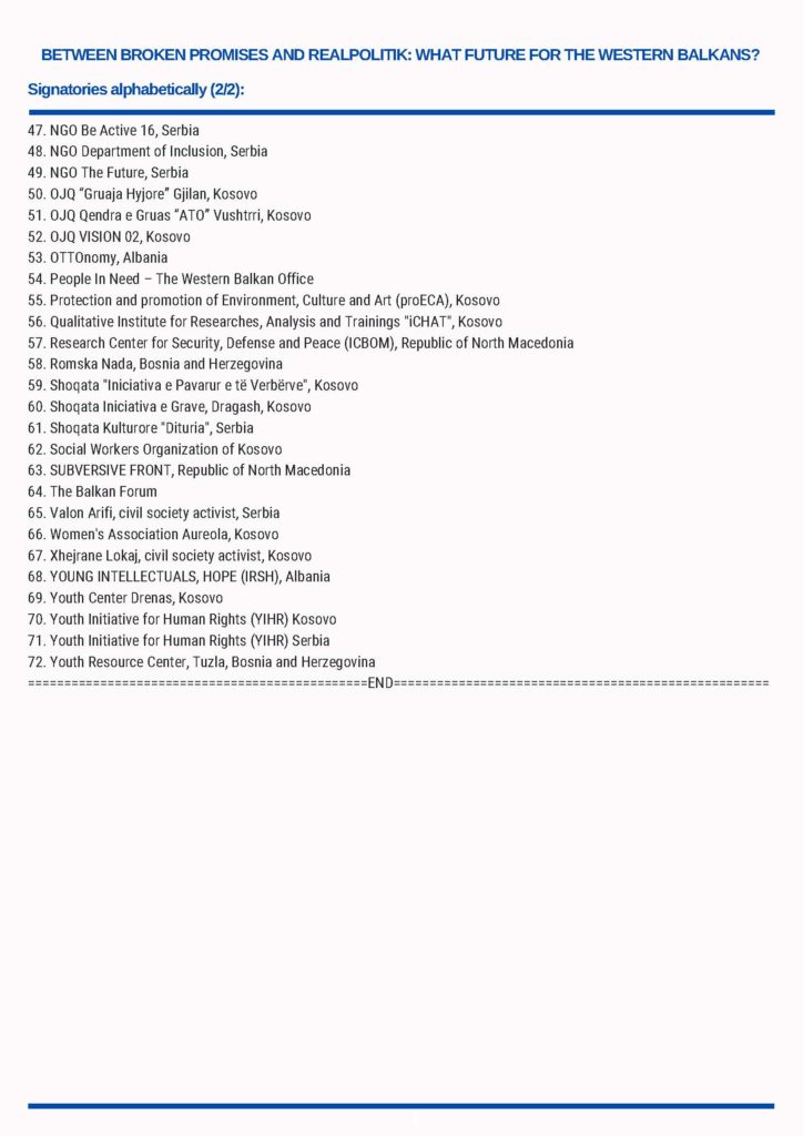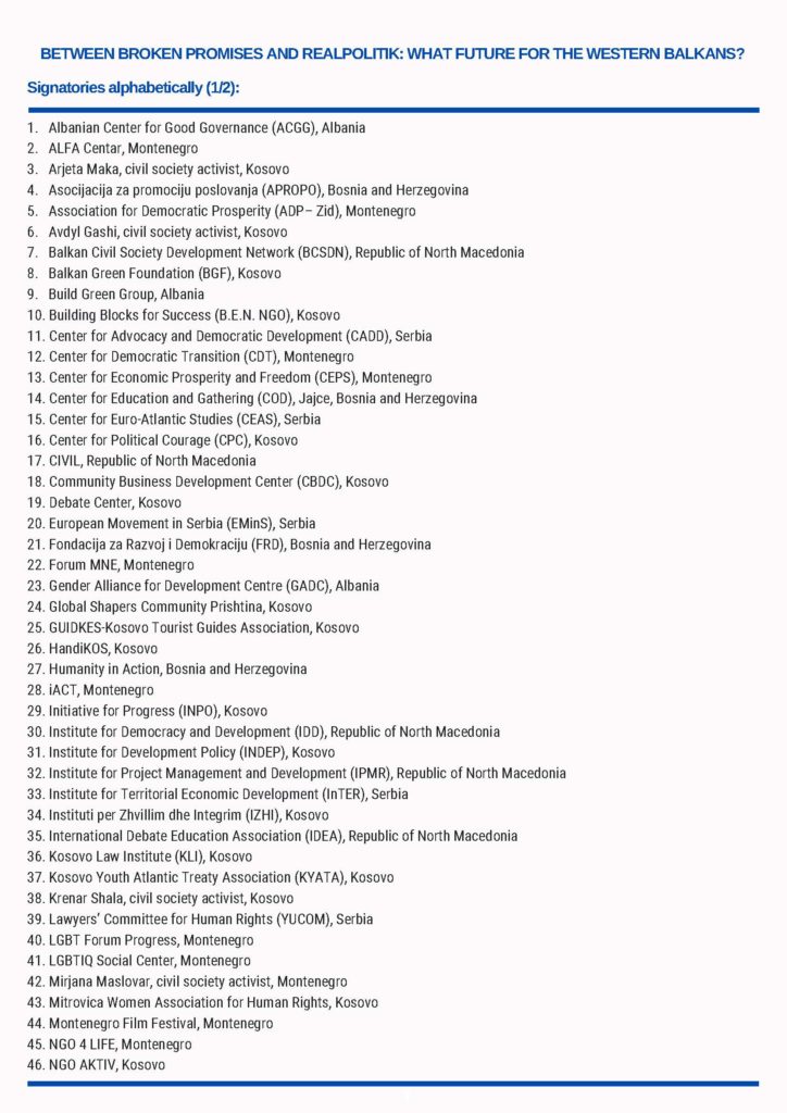 Below is the response to the EU Summit held in Brdo (Slovenia) and supported by 72 civil society actors (67 NGOs and 5 activists) in the six countries of the Western Balkans, including GUIDEKS. This response was sent to EU institutions in Brussels, as well as EU offices, German and French embassies, and NGOs in the 6 countries of the region.